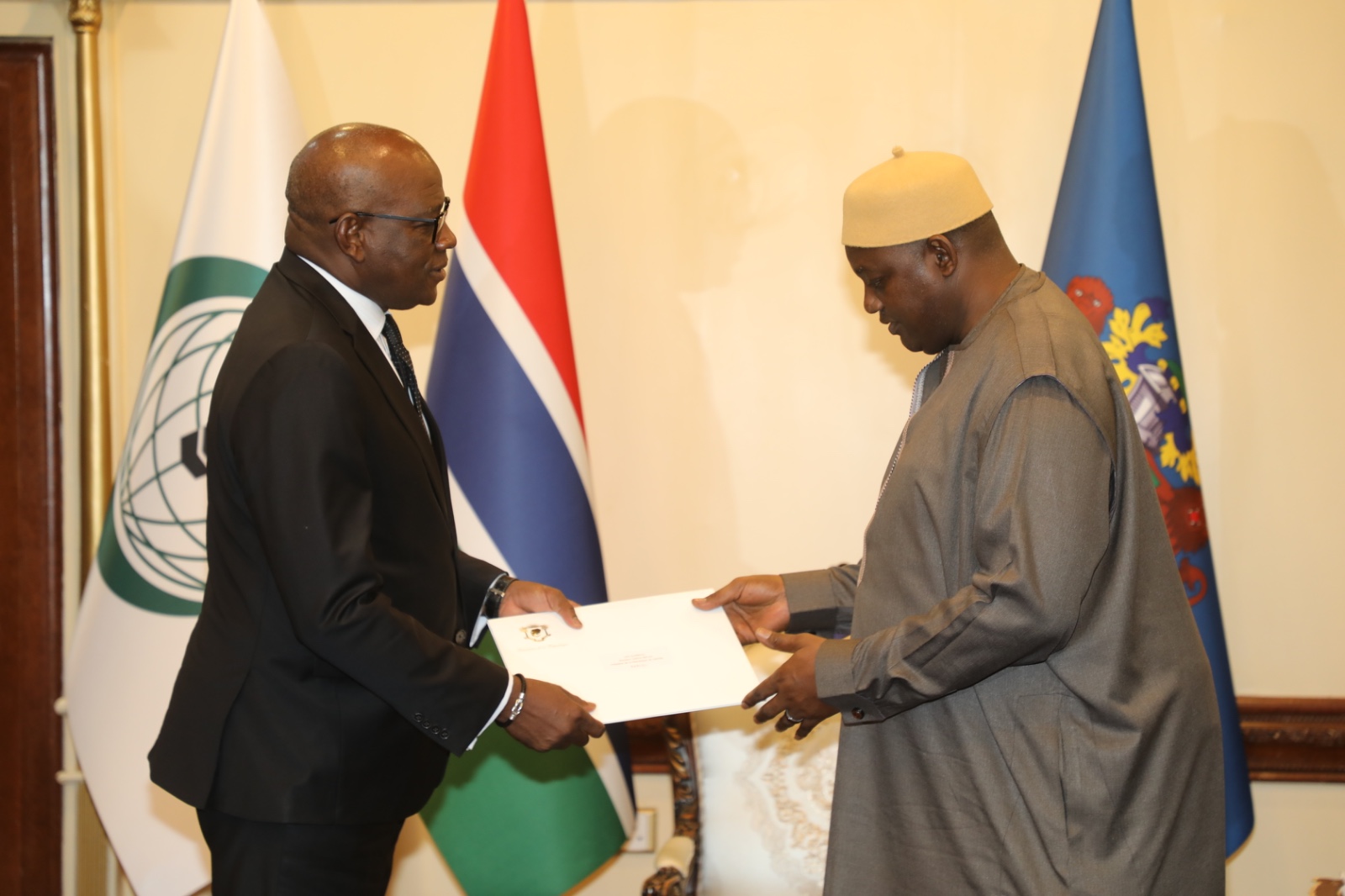 State House, Banjul, 12th September 2025: His Excellency President Adama Barrow on Wednesday received letters of credence of the Ambassadors of Japan and the Republic of Côte d’Ivoire accredited to The Gambia, at the State House in Banjul.