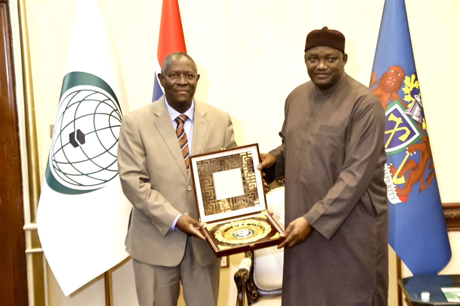 State House, Banjul, 21st April 2026: His Excellency President Adama Barrow today received the President of the ECOWAS Community Court of Justice, Justice Ricardo Claúdio Monteiro Gonçalves, who was accompanied by a high-level delegation including judges of the Court.